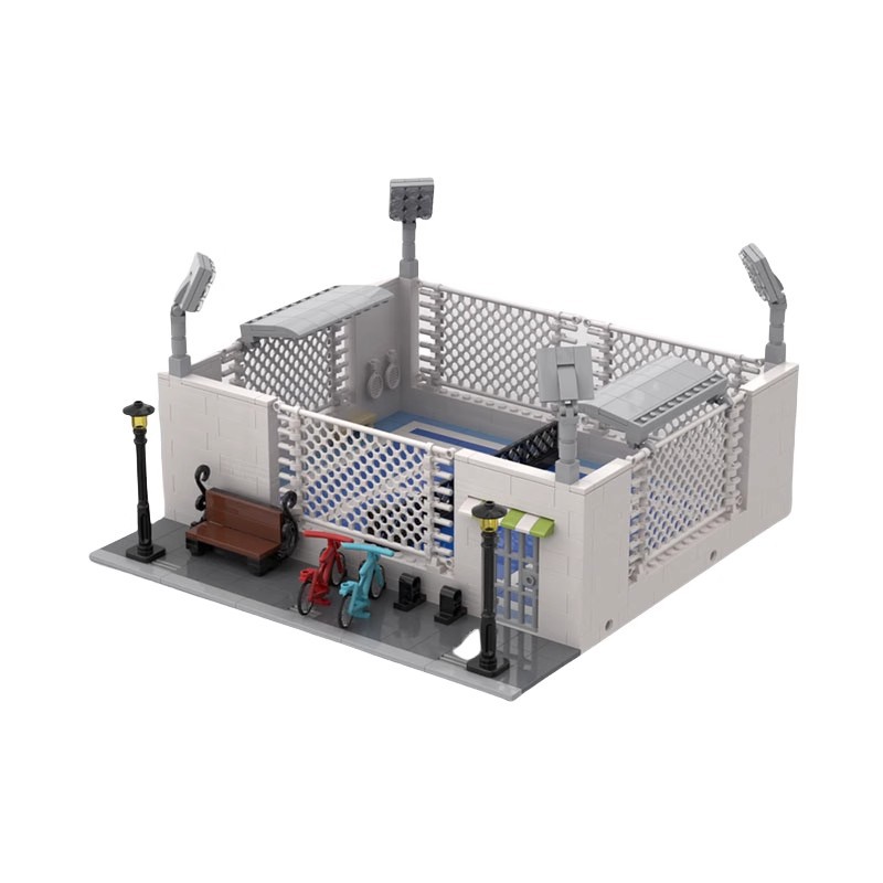 MOC-126206のテニスコートの子供はおもちゃの積み木を詰めてレゴセットの都市のシーンの建築の模型に対応します。