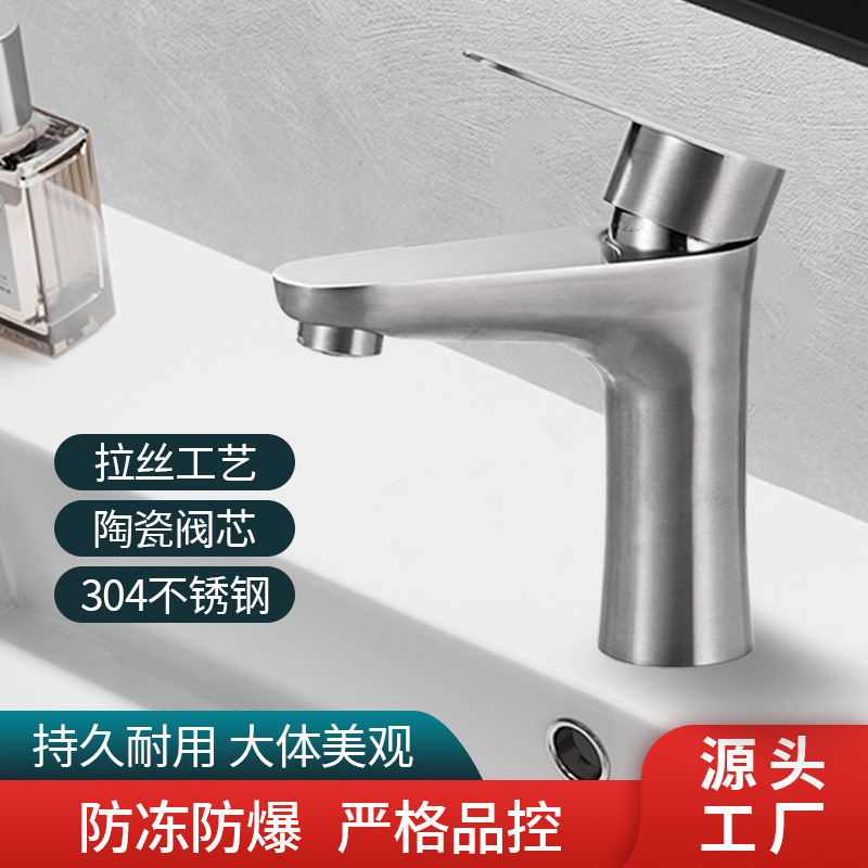 304ステンレス浴室蛇口単冷小蛮腰台蛇口家庭用単孔冷熱洗面器蛇口