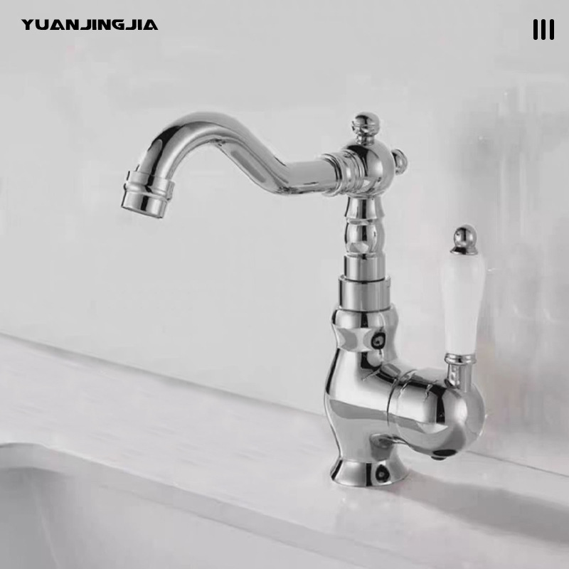フランス式の軽い豪華な蛇口の復古銅のシングルは洗面台の浴室のキャビネットの陶磁器の一体の洗面器の冷熱の蛇口を持ちます。