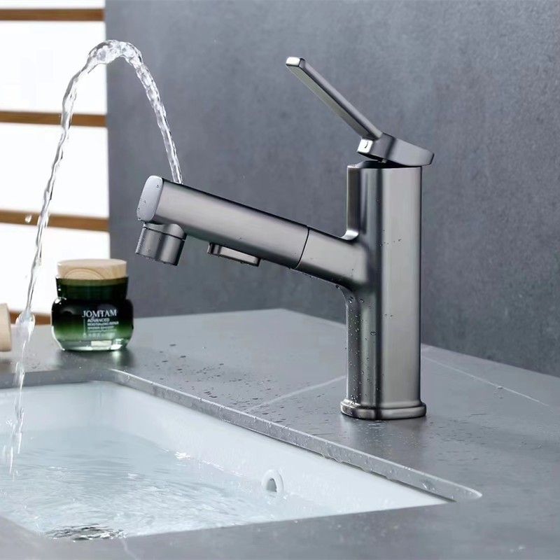銃の灰色の四方の上で蛇口の冷たいお湯の洗面器の蛇口を噴出して自由に伸縮して引き出し式の蛇口を引き出します。