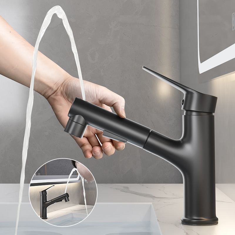 滝型洗面台蛇口 引き出し式回転可能 銅製ガンメタルカラー 温冷両用 洗面台用 高型 浴室用