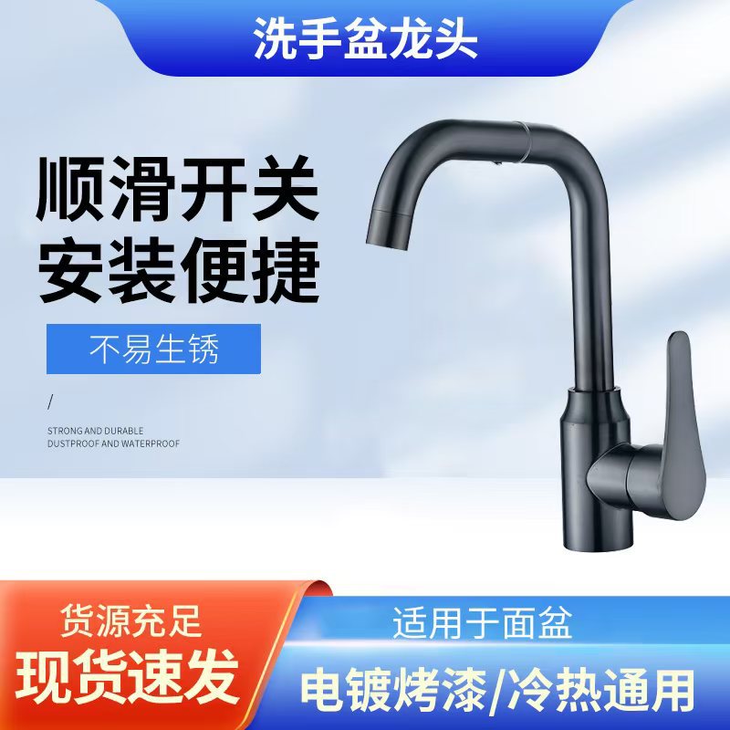 全銅冷熱両用浴室洗面器洗面器万向回転洗面器蛇口黒古洗面器蛇口