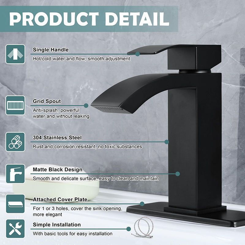 クロスボーダー304ステンレス滝洗面器蛇口黒四方洗面器浴室洗面器冷熱蛇口