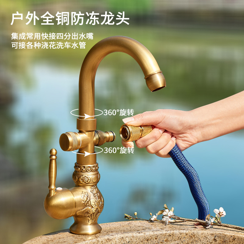 アンティーク屋外蛇口防凍裂庭単冷全銅洗面器大理石盆花園屋外蛇口