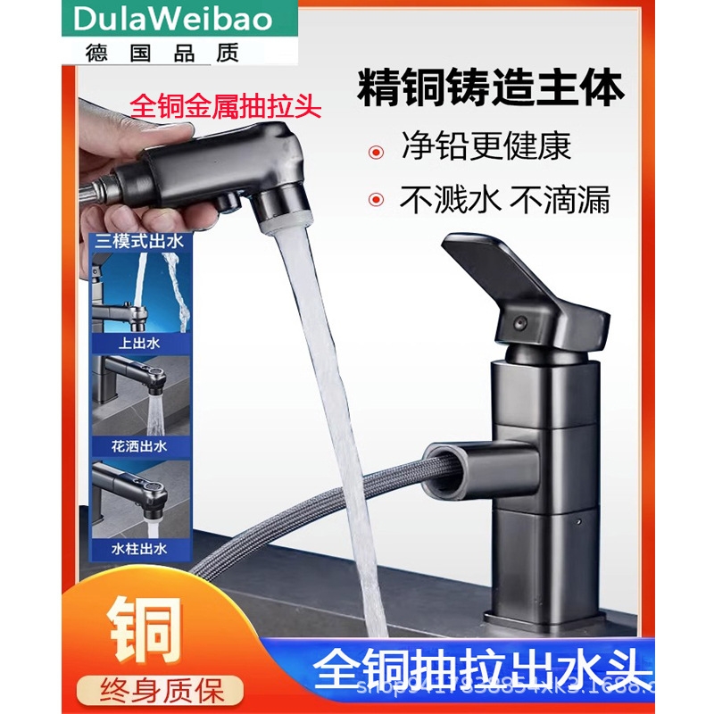 ネットで話題の洗面器用引き出し式蛇口、防滴冷温水、純銅製、回転式、洗面台用、うがい用