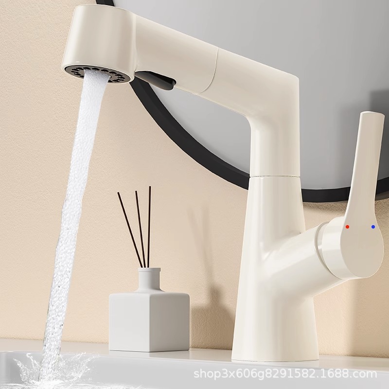 クリーム白家庭用トイレ洗面台蛇口洗面器万向引き式昇降蛇口全銅冷熱