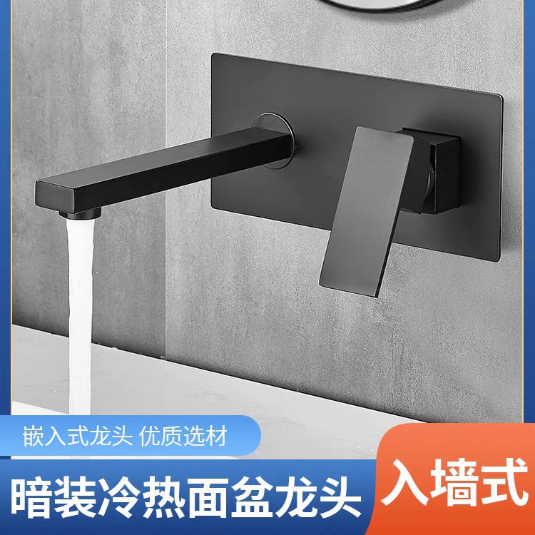 クロスボーダー専用黒色全銅壁式蛇口手洗い洗面器蛇口冷熱暗装洗面器蛇口