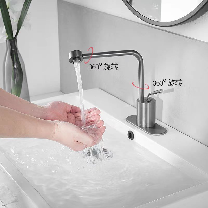 伸線銃灰色蛇口浴室キャビネット多機能洗面器洗面器万能回転真鍮冷熱蛇口