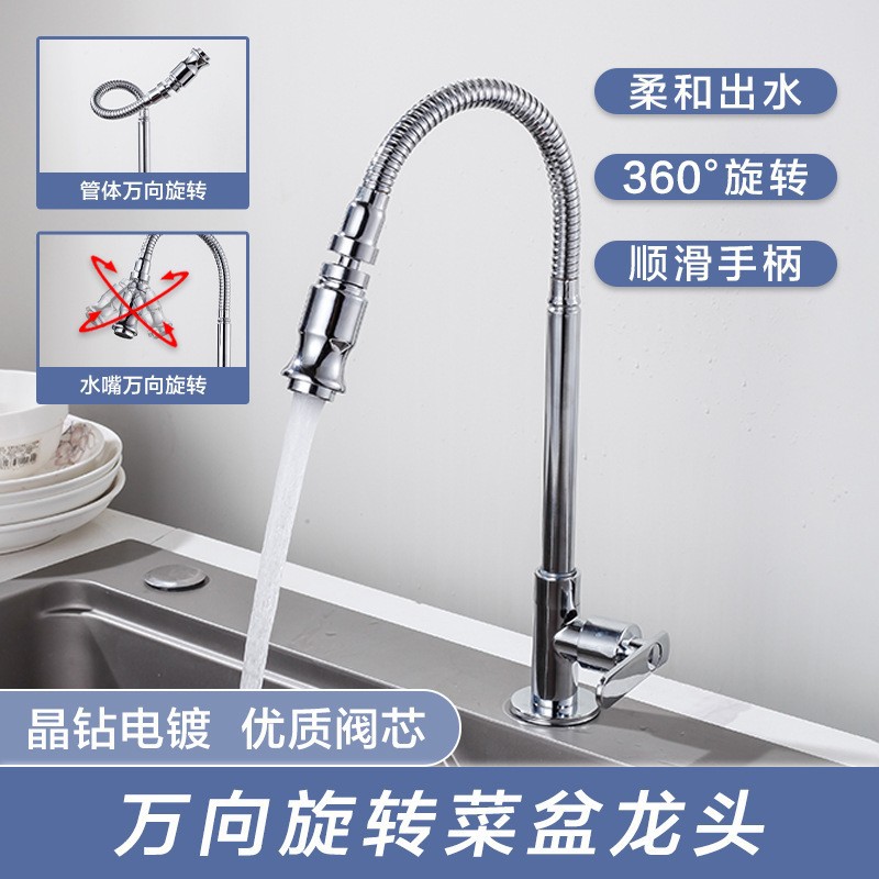 銅体厨房単冷菜盆蛇口立体自在回転皿洗い単冷蛇口