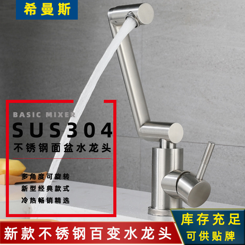 304ステンレス洗面器蛇口熱冷招財猫多角度自在回転新型蛇口調整可能