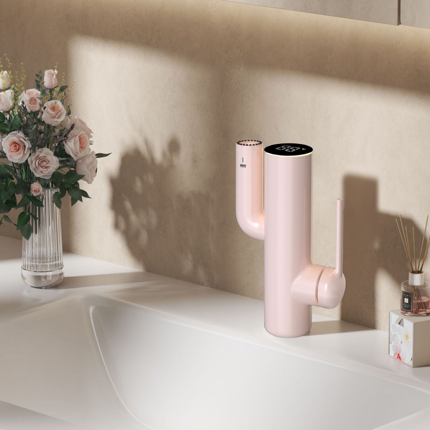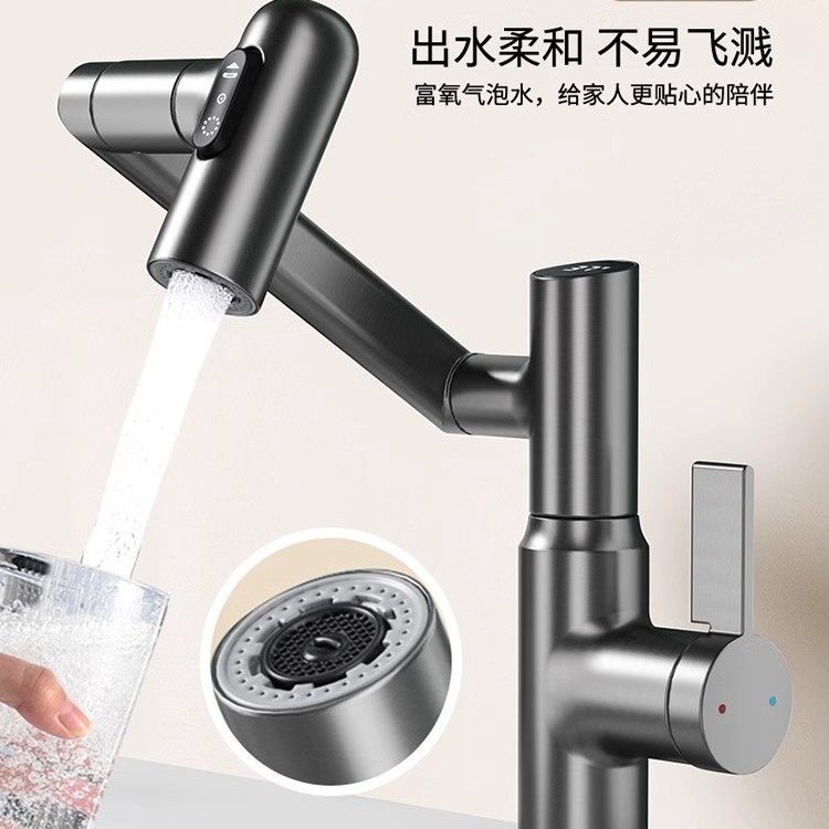 メーカー全銅デジタル表示洗面器灰色ピンク招き猫蛇口新型回転引き出し洗面蛇口