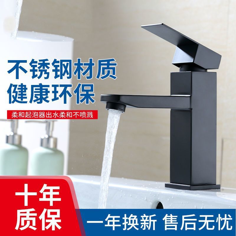 304ステンレス蛇口と高洗面器家庭用トイレ手洗い洗面器冷熱黒四方蛇口