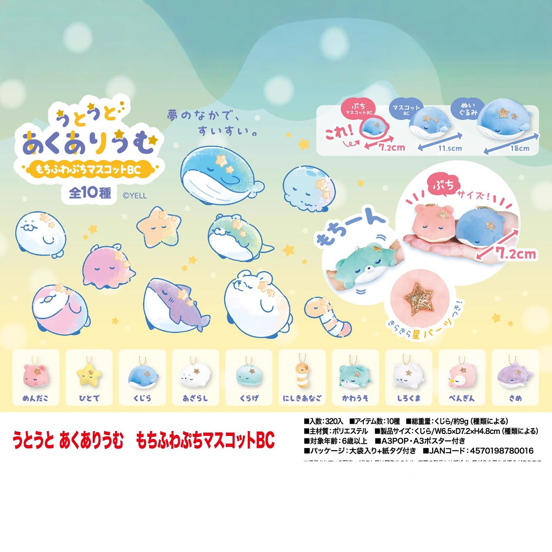 既製品 眠そうな水族館のぬいぐるみペンダント 小サイズ 10種類入り 7.2cm