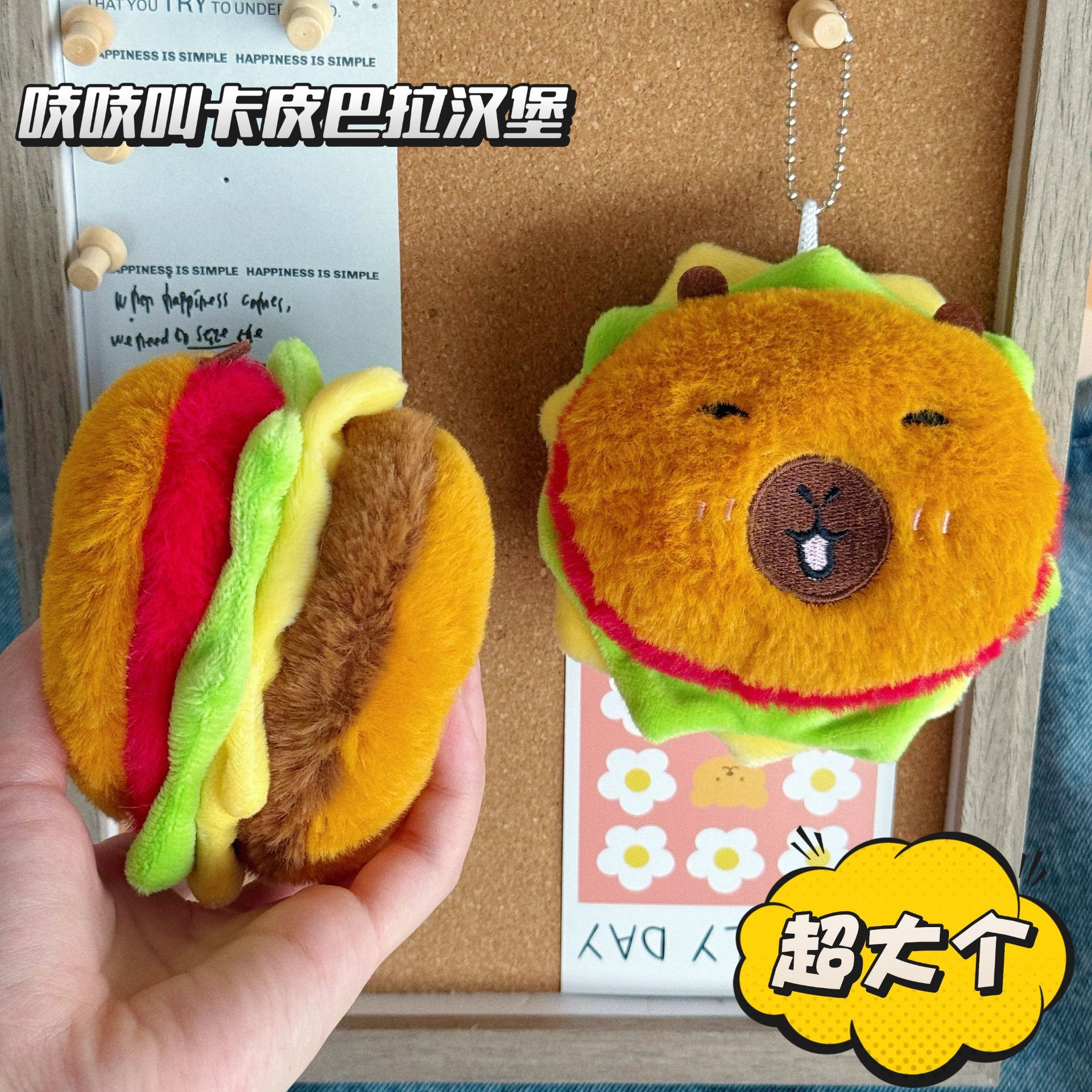 キュートなカピバラバーガーぬいぐるみカピバラペンダントポータブルキーホルダー学生スクールバッグペンダント