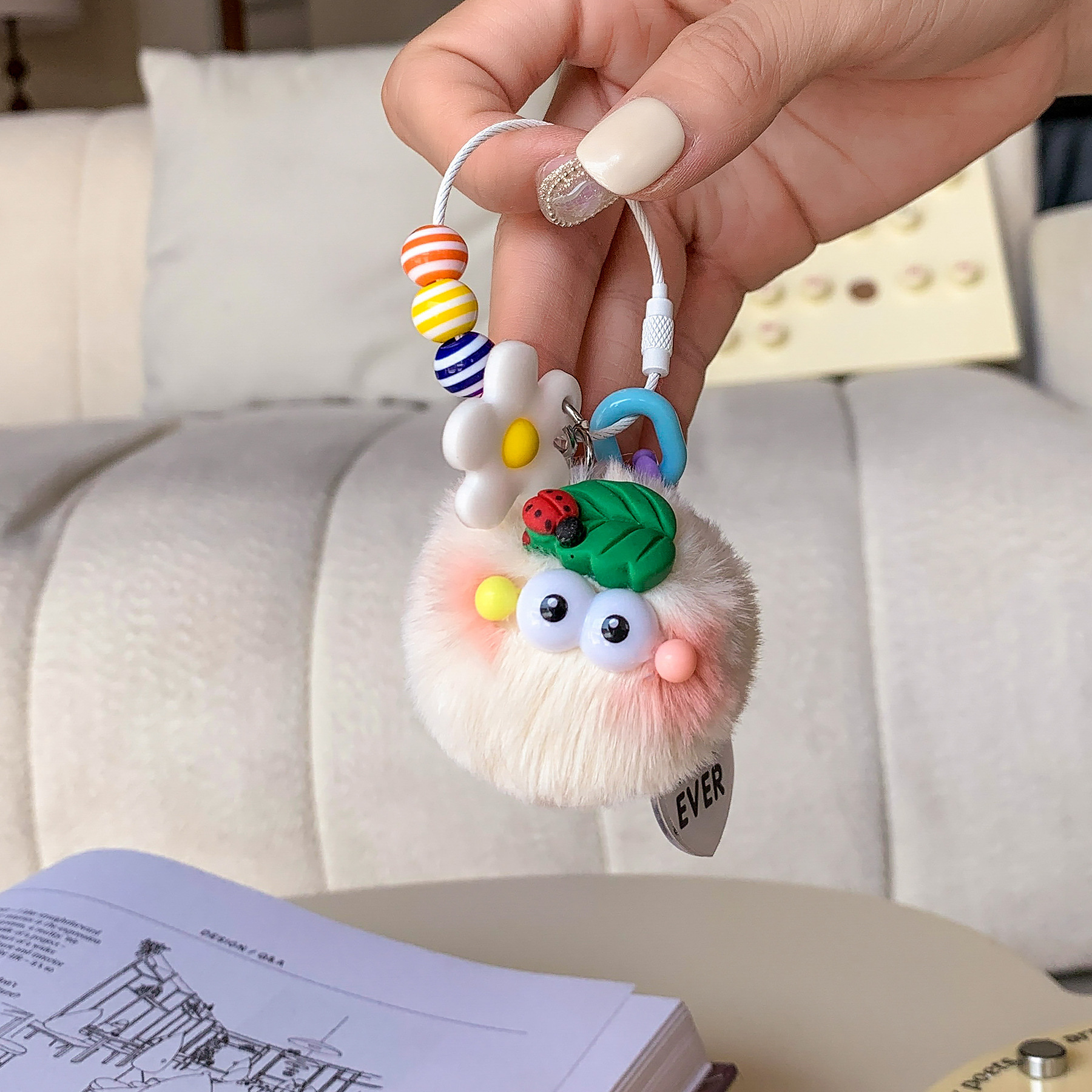 小さな車のキーホルダー女性のぬいぐるみの頬紅の小さな石炭ボールのストラップがかわいいテントウムシのバッグに飾られたバックパックの毛玉アクセサリー