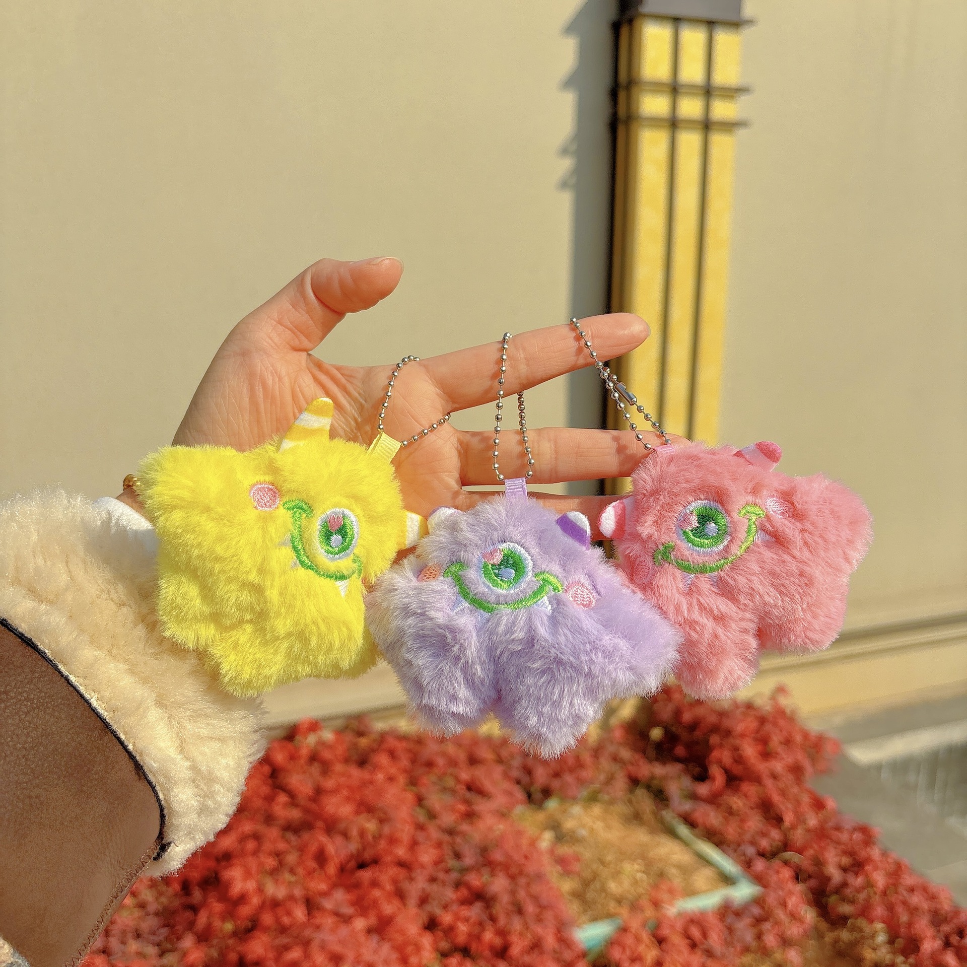 漫画の片目の小さい怪獣のぬいぐるみのペンダントの創意カラーのかわいい片目の獣の鍵は子供機のお土産を掛けます。
