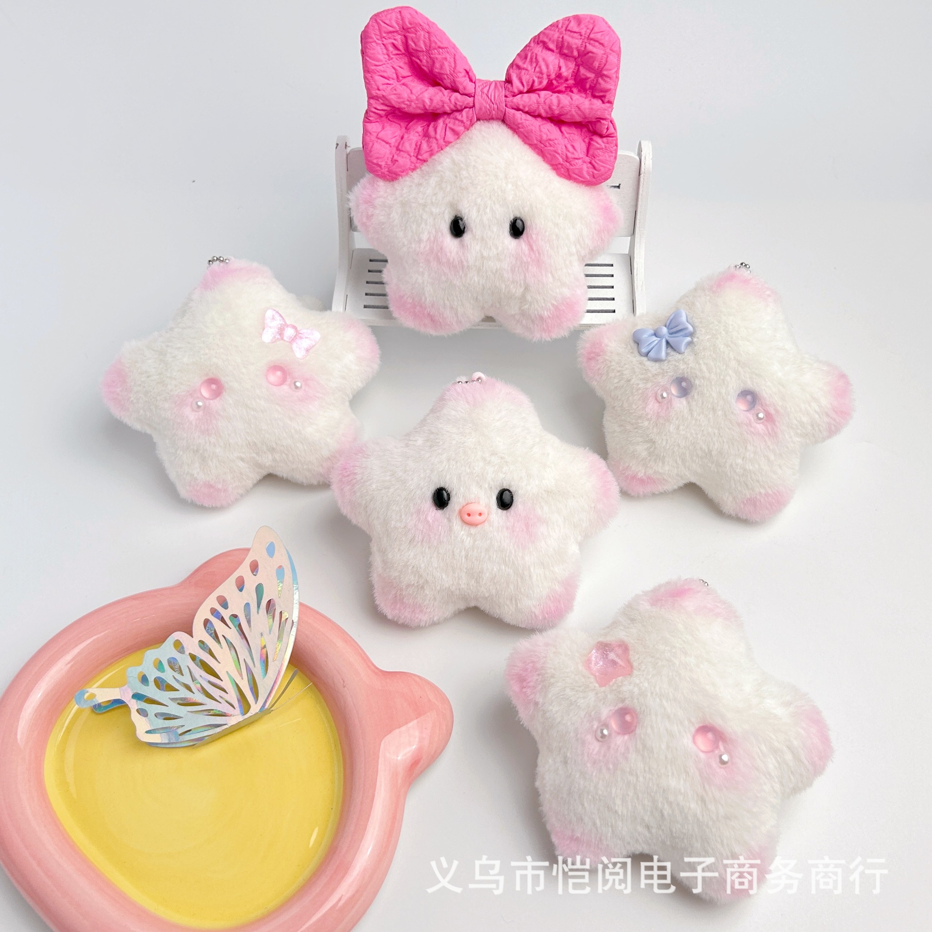 笑顔の顔がキーキーと呼ばれてかわいい黄色の五角星少女のかばんのぬいぐるみのストラップが飾られている