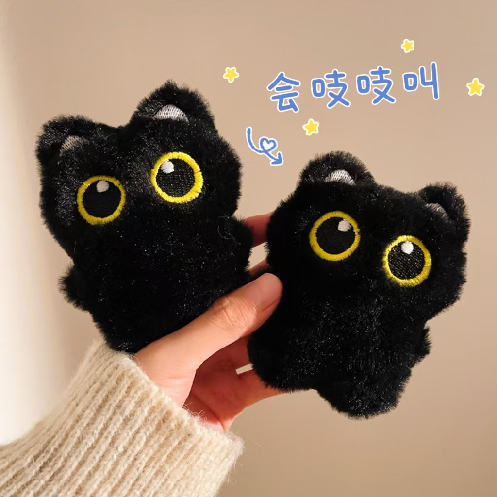 きしむ音がする小さな人形、黒猫のぬいぐるみキーホルダー、バッグ飾り、飲食店の販促用プチギフト