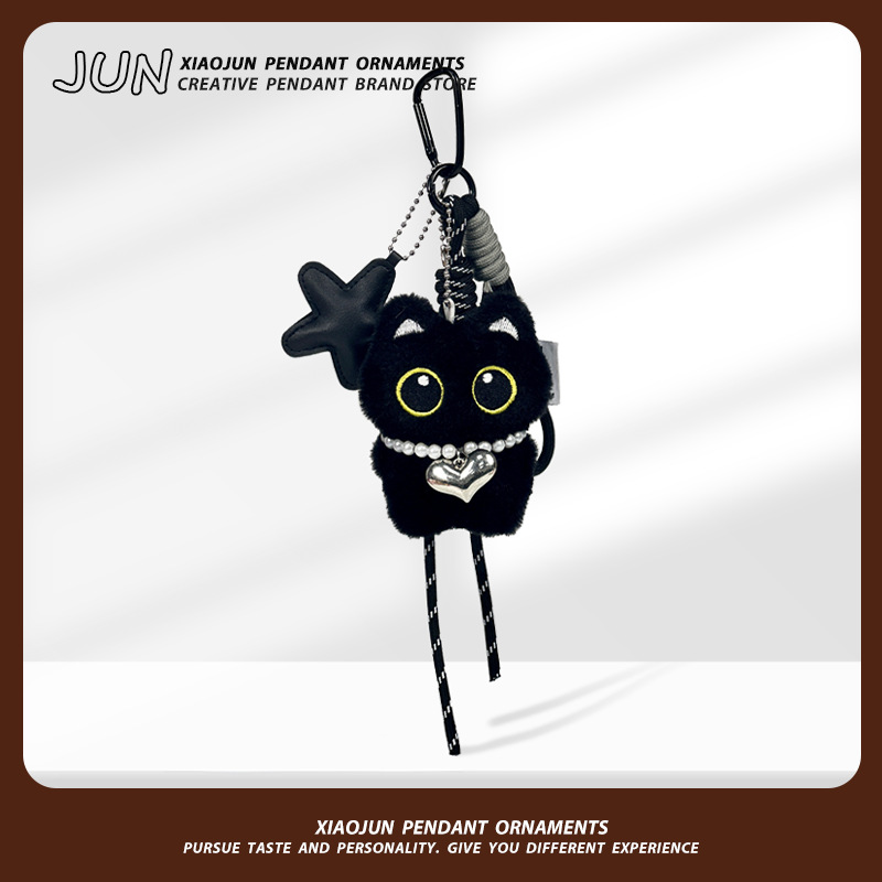 ペンダント小さな黒猫インスタ風飾り漫画風バッグぬいぐるみクリエイティブキーホルダー唾液タオルドーパミン