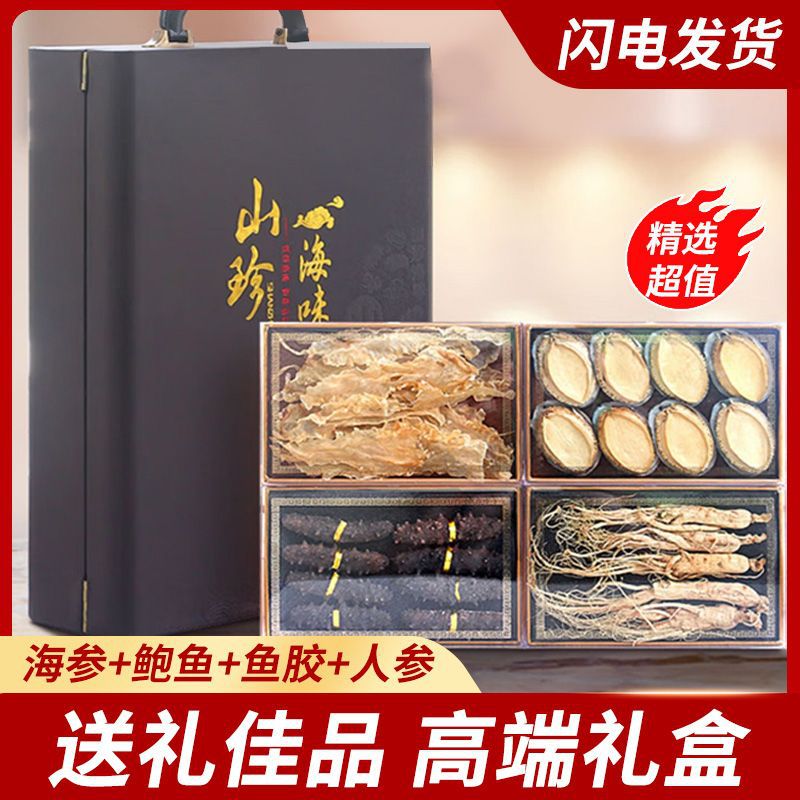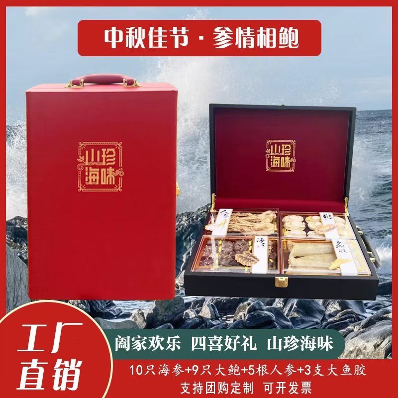 海参、アワビ、ギフトボックス入り中秋節年物ギフト、魚膠、羊肚菌、高麗人参、四種の海鮮乾物、高品質