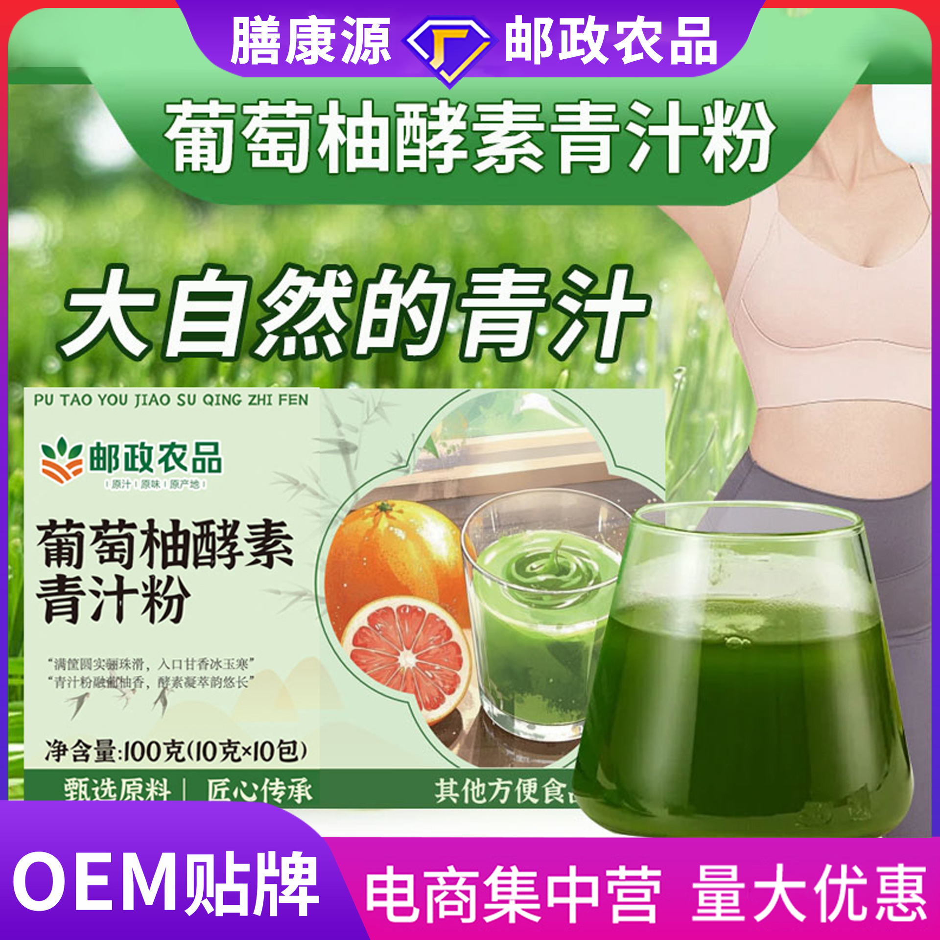 中国郵便農産物グレープフルーツ酵素青汁粉末果物と野菜の酵素固形飲料男性と女性、子供向けプルーン粉末