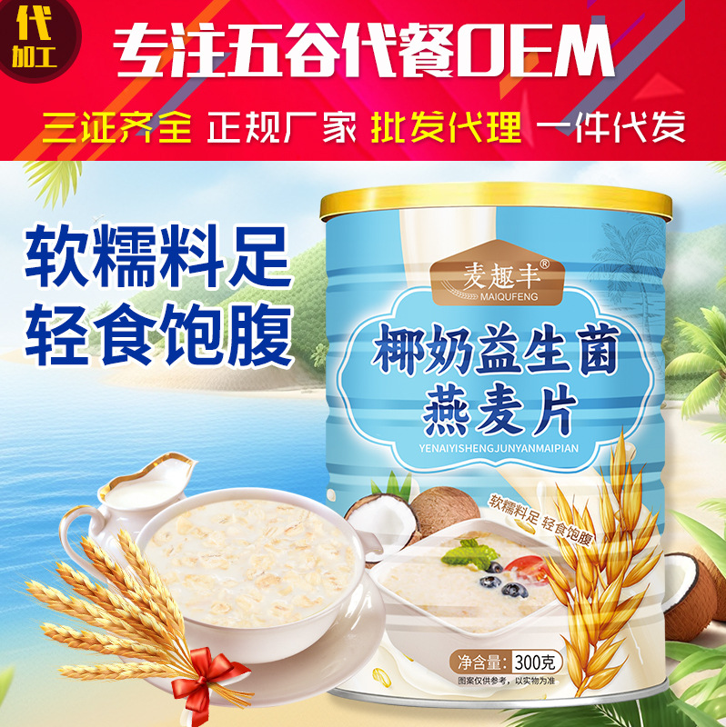 麦趣味豊代発ココナツミルク益生菌オートミール300グラム缶朝食代食満腹シリアルミルク学生