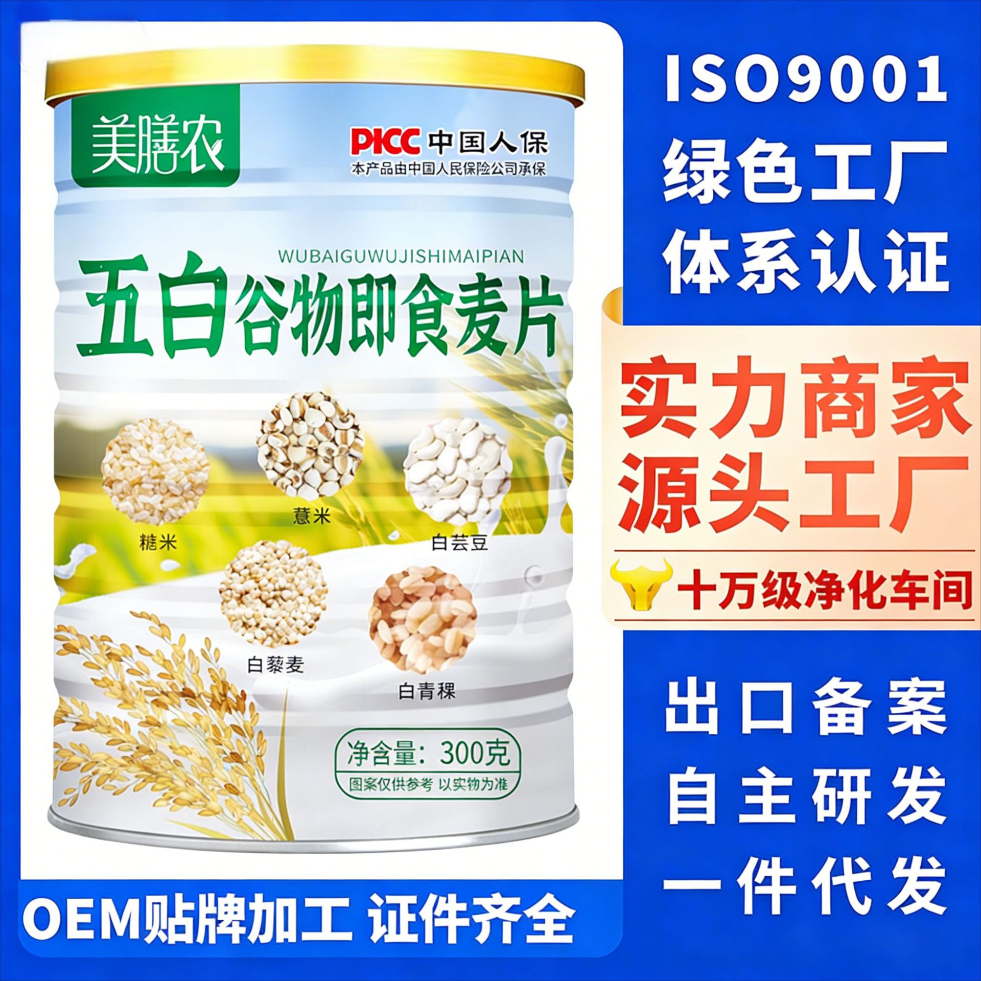 現物代発ココナツミルク益生菌オートミール300グラム缶朝食代食満腹シリアル牛乳学生