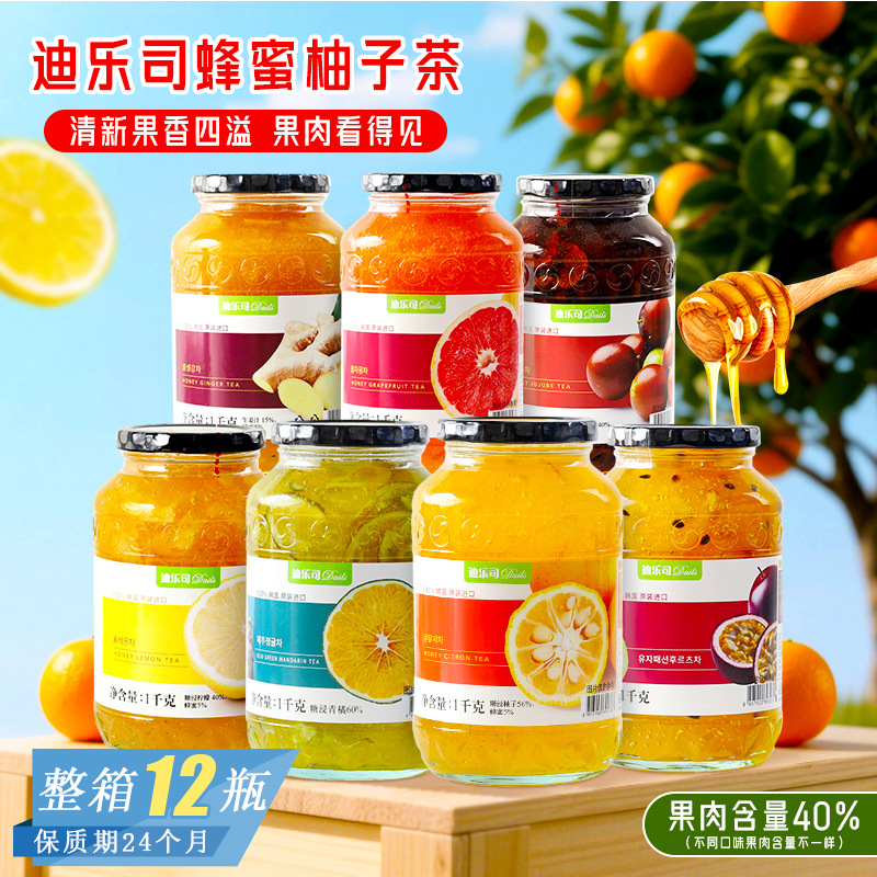 韓国輸入迪楽司蜂蜜柚子百香果茶飲料夏ネット赤レモン果肉醤抽出飲料
