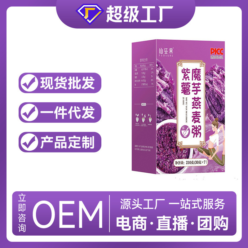 Xianzigu パープルスイートポテトこんにゃくオートミール粥全粒朝食粥インスタント粥食事代替粉末メーカー卸売配送