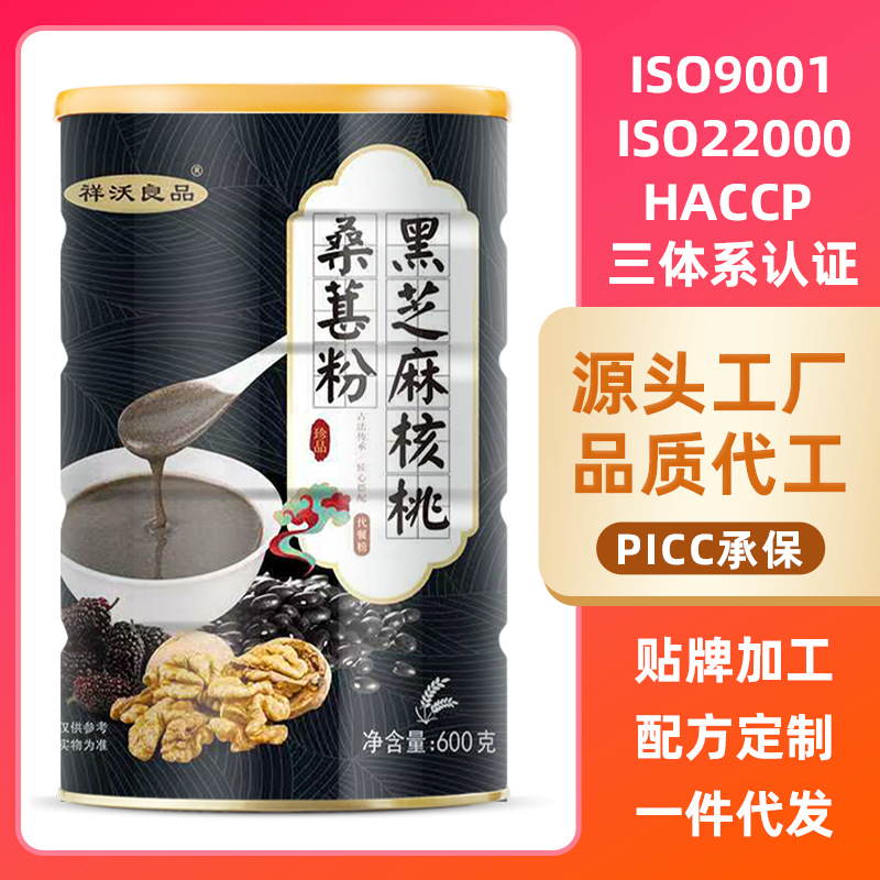 全粒粉朝食黒豆粉末卸売黒ごまクルミ桑粉末無添加ショ糖缶詰 600 グラムすぐに食べられる