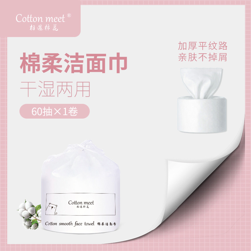 軽迎抜取式乾湿両用洗顔タオル使い捨てペーパータオル紙拭き顔綿柔巾男女60枚