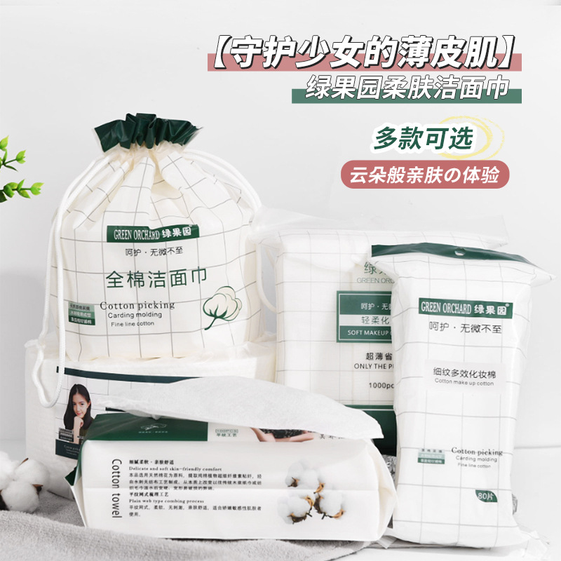 緑の果樹園の洗顔タオルの使い捨ての純綿の柔らかいタオルは厚い洗面顔を拭いて化粧の洗顔紙を落として式の100pcsを引き出します。