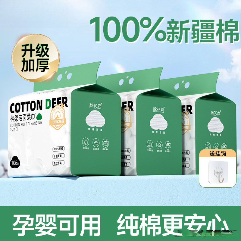 棉花鹿洗脸巾悬挂式纯棉棉柔巾加厚洁面洗面巾不毛包邮