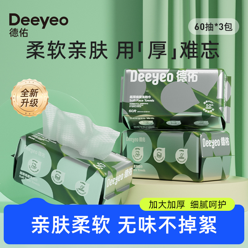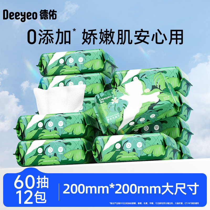 徳佑飛鳥洗顔タオル使い捨て綿柔巾60抽出12包乾湿両用顔拭き男女共通