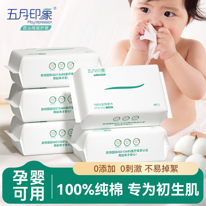 永舒乳児洗顔タオル乾湿両用使い捨て洗顔タオル厚手新生児手口専用60抽出 * 3