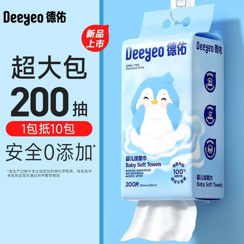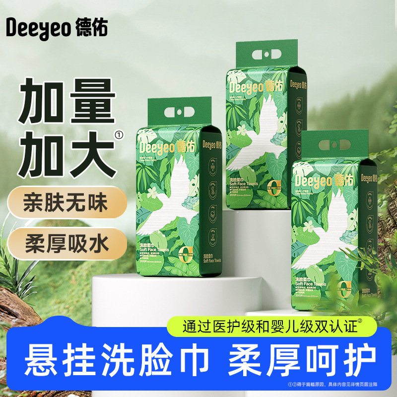 徳佑飛鳥吊り式洗顔タオル200枚3包を厚くして、顔拭きタオルを一度に洗顔する乾湿両用