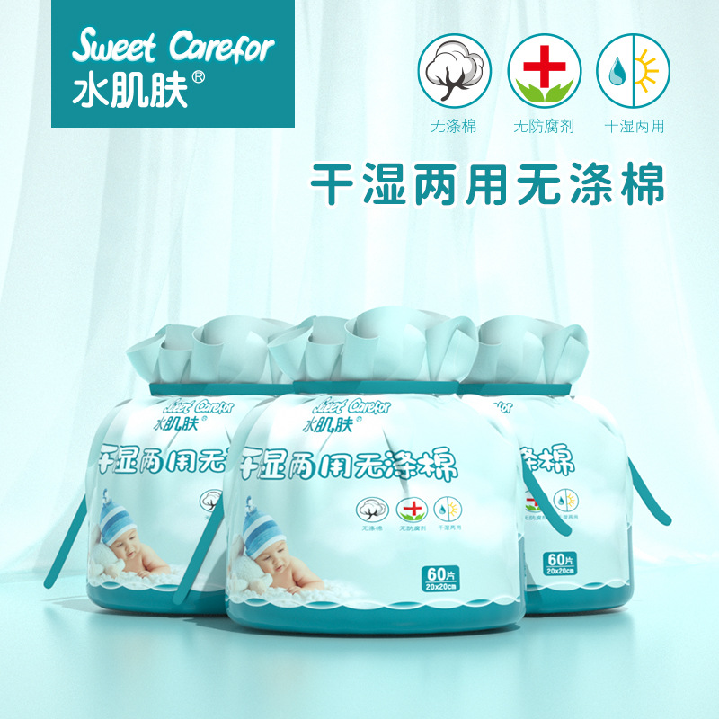 Baby care洗顔使い捨て厚手ベビータオル60抜き厚手ソフトタオル乾湿両用洗顔タオル抜き式