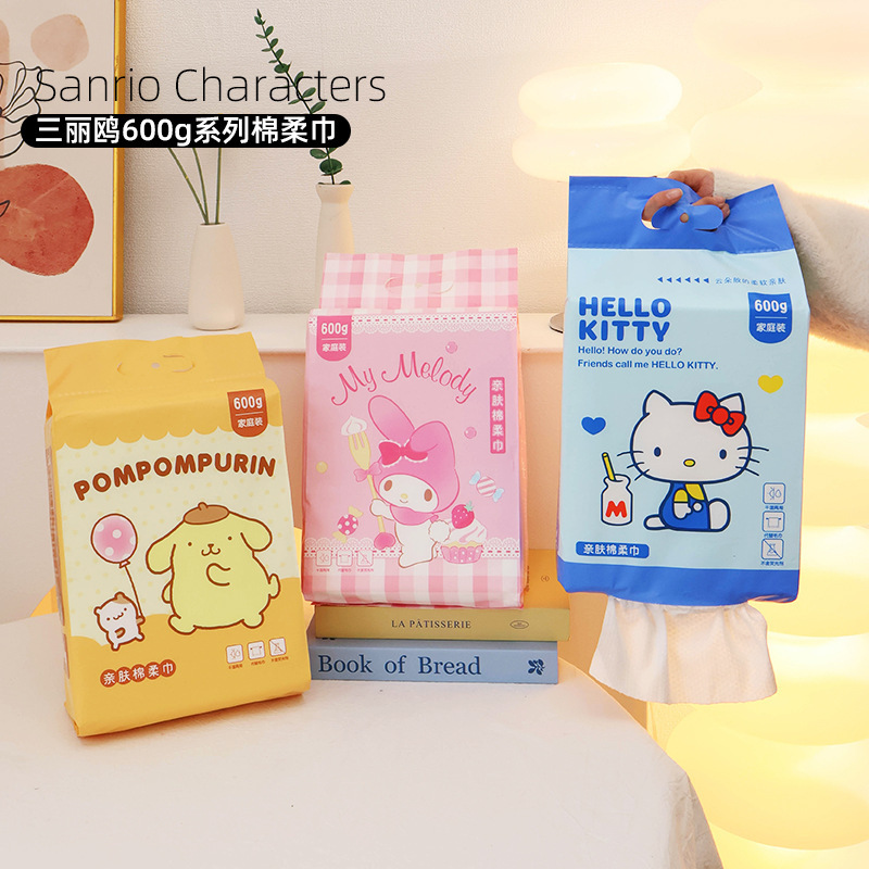サンリオ正規品 メロディーパウダー 600g 吊り下げフェイスタオル ワンタッチソフト ファミリーパック