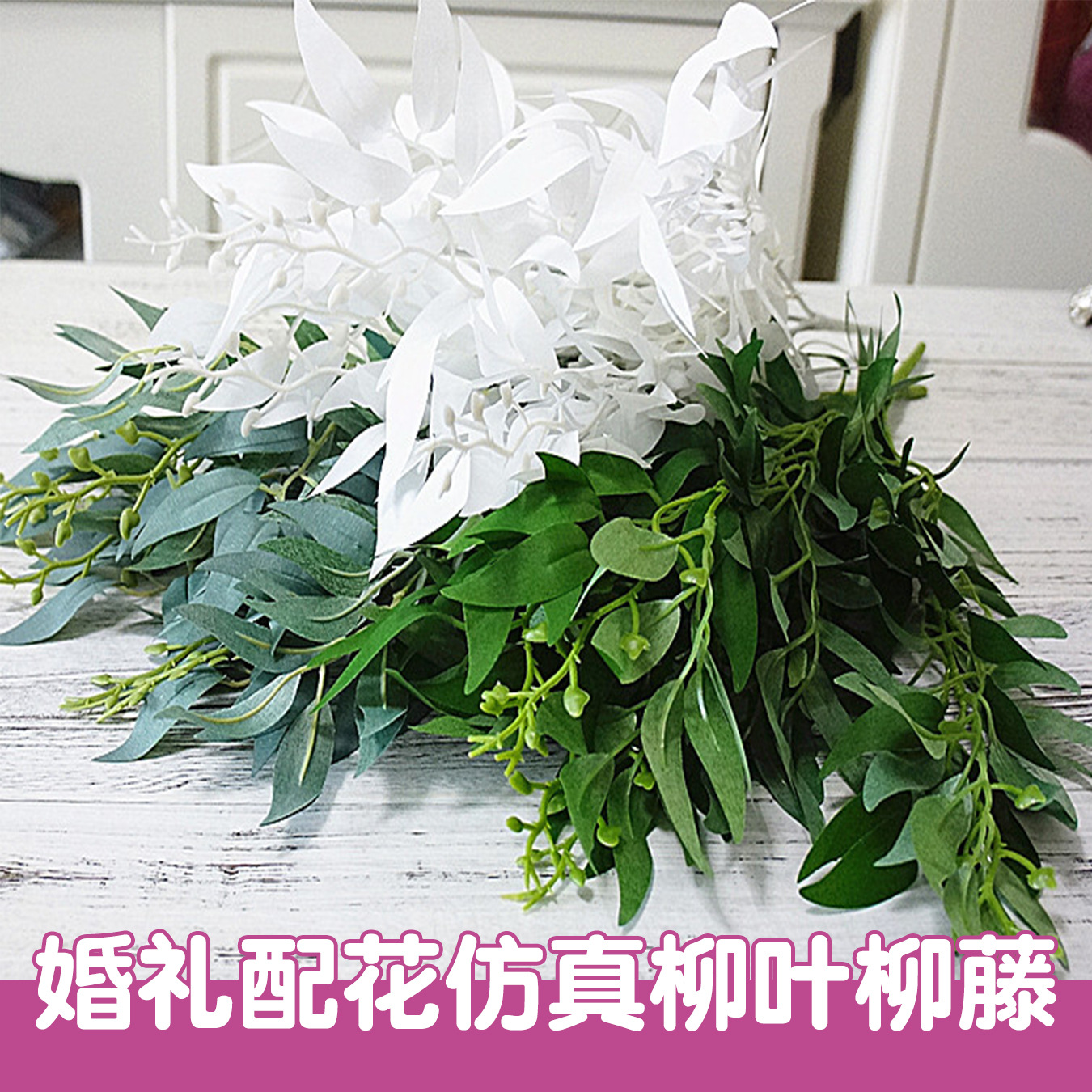 柳の葉の装飾は柳の条の緑の葉の室内のプラスチックの花の藤の条の結婚祝いの布景の植物の藤の条の葉の偽の花をシミュレーションします。
