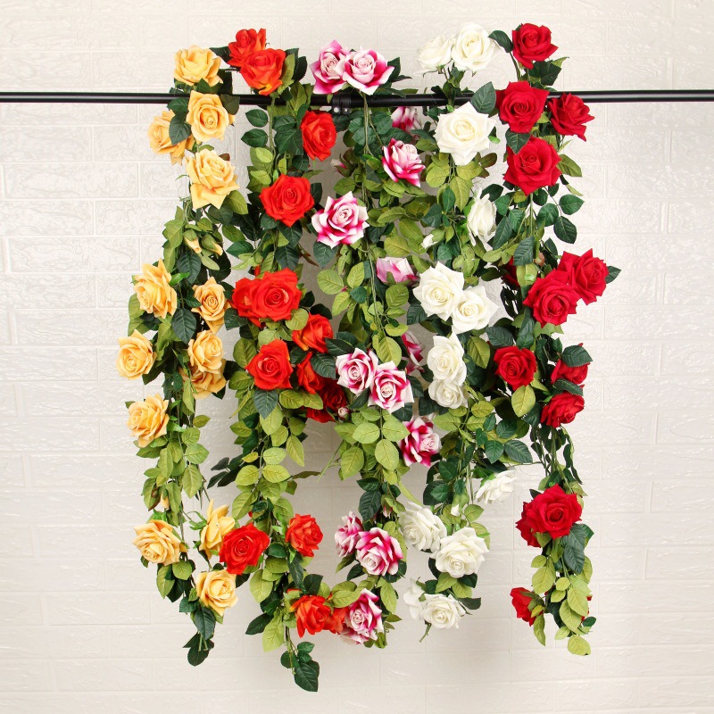 新型のシミュレーションのバラの花の吊りかごは壁の花の結婚祝いの造花のプラスチックの花の藤の条の客間のベランダを掛けて壁掛けを飾ります。