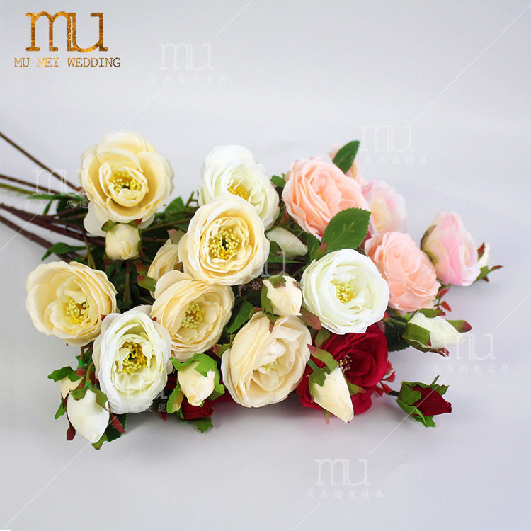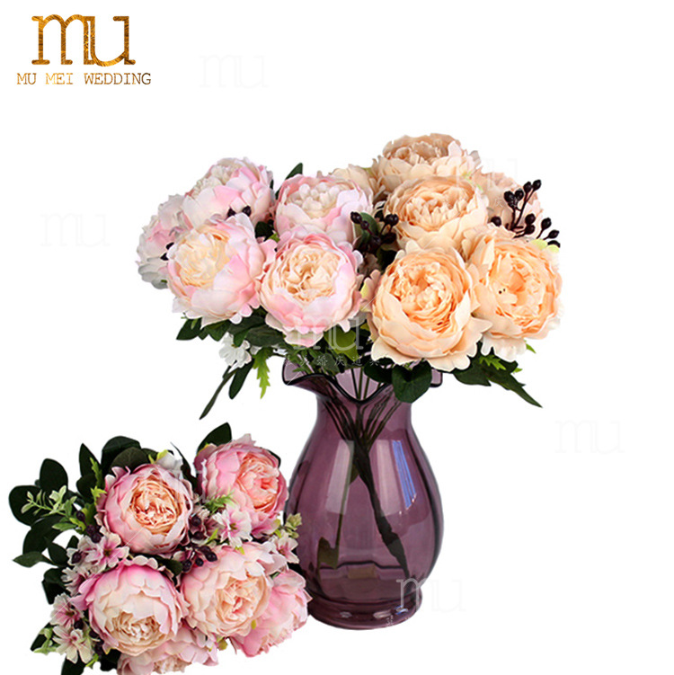 新商品ウェディングシミュレーションバラ牡丹絹花11頭翡翠バラ牡丹ウェディング装飾絹花路引花