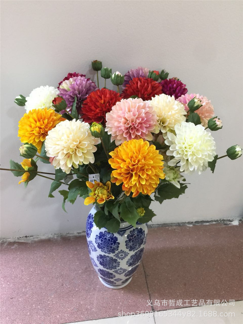 美しい菊のアジサイの花のダリアの食卓をシミュレーションしてリビングの花瓶を並べます。