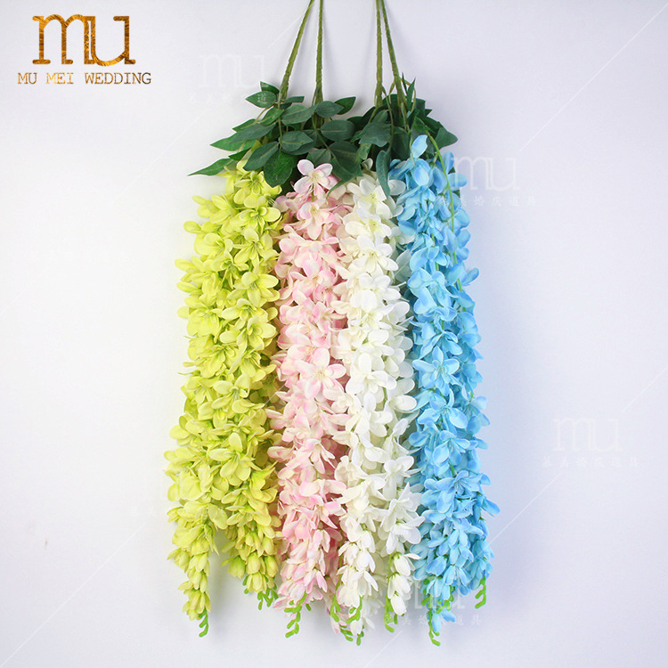 オーストラリアのバラの藤条プラスチックの偽藤の結婚式の花のつるはパイプの屋根の偽の花の藤条の装飾を掛けます。