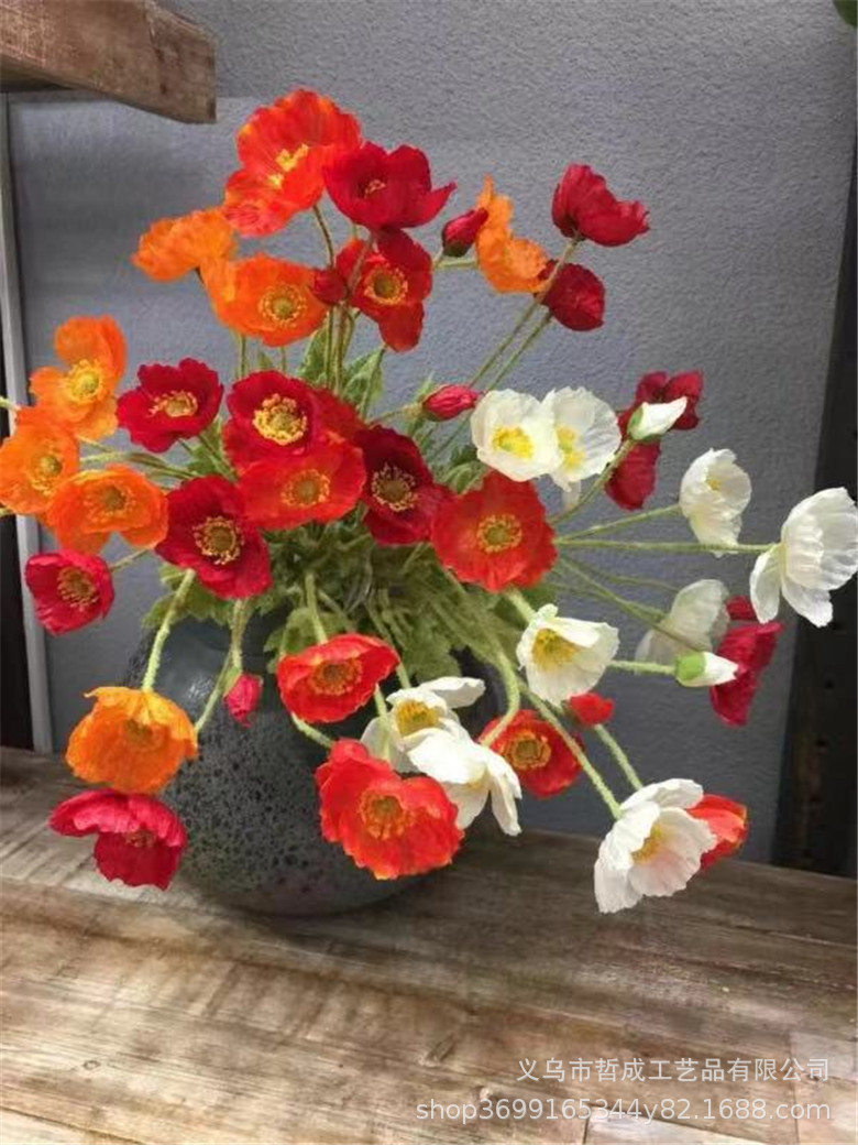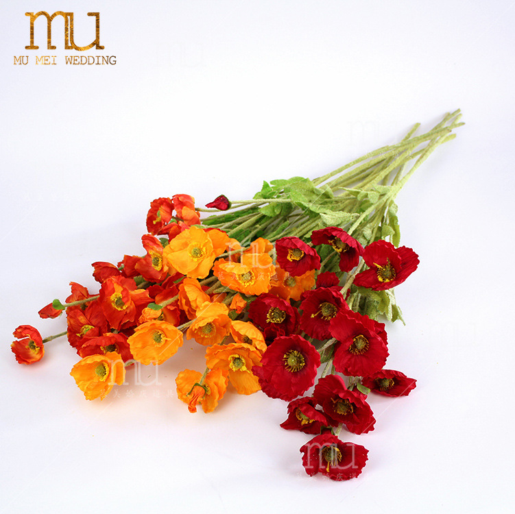 新しいモデルのコクリコ美人の花の植毛のケシの花の結婚祝いの道は絹の花の結婚式の装飾の生け花を引いて花の単枝の花を配合します。