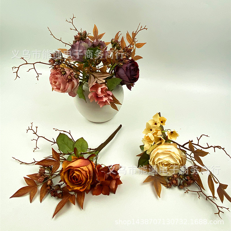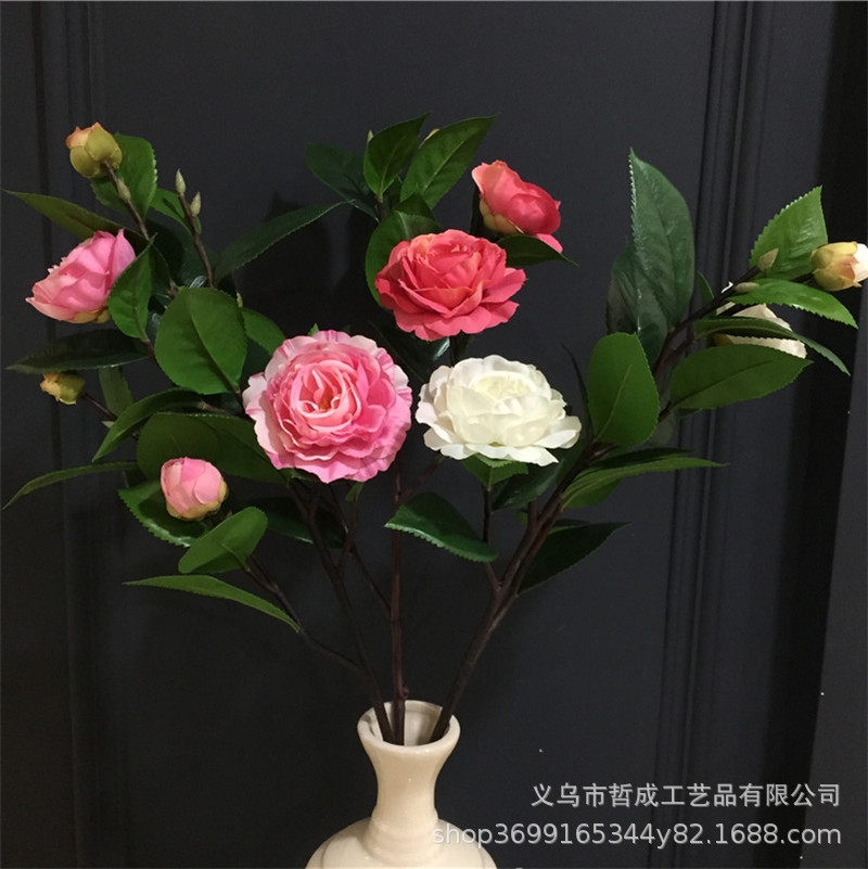 模造単枝茶薔薇清新白色ツバキ花絹花偽花束客間食卓装飾生け花セット