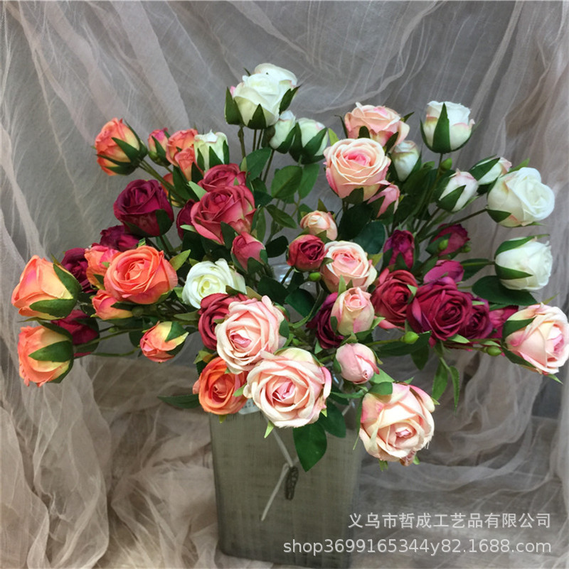 模造花多頭小薔薇つぼみ偽花家庭装飾品客間レストラン小清新絹花芸