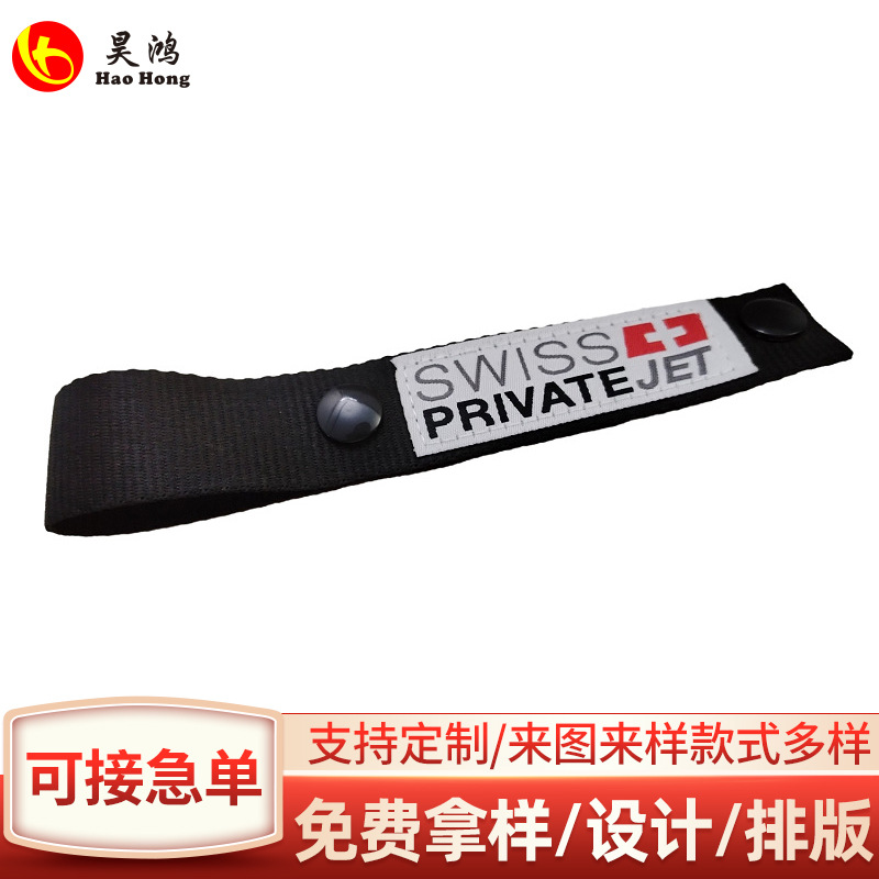 メーカーは新しい黒色ポリエステル荷物帯刺繍帯の名前をカスタマイズして耐久性のあるナイロン荷物吊り下げ帯を持っている