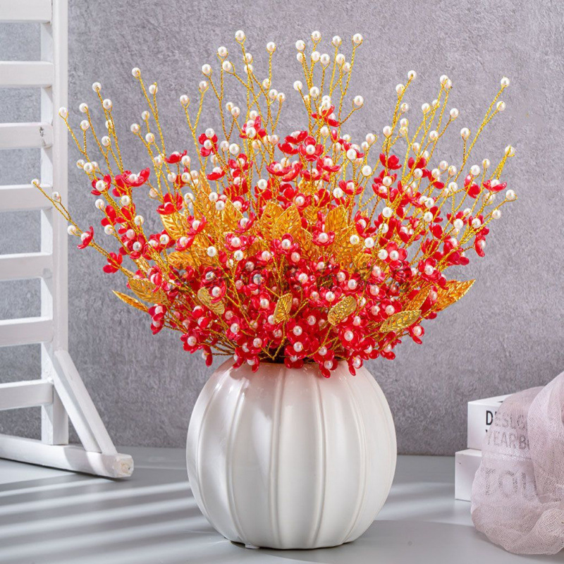 ネットの赤い満天星の花束の材料は手作りの数珠の祝日の贈り物を包んでキャンディー色の客間の置物を飾って郵送します。