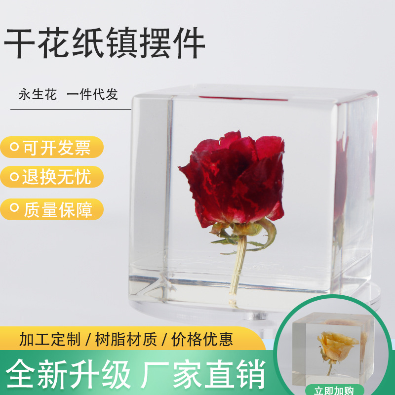 タンポポ検体バラ永生花デイジー植物キューブ水晶置物樹脂車載ホーム鎮紙