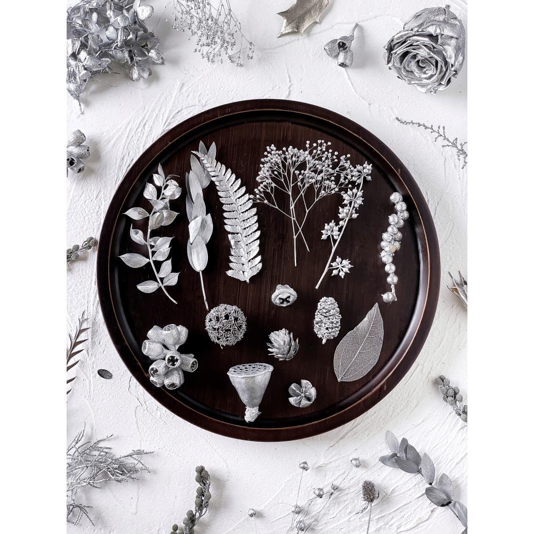 クリスマスの銀色の永遠の花の指輪の材料はdiyの乾いた花束の植物の標本の封筒のカードの装飾を包みます。